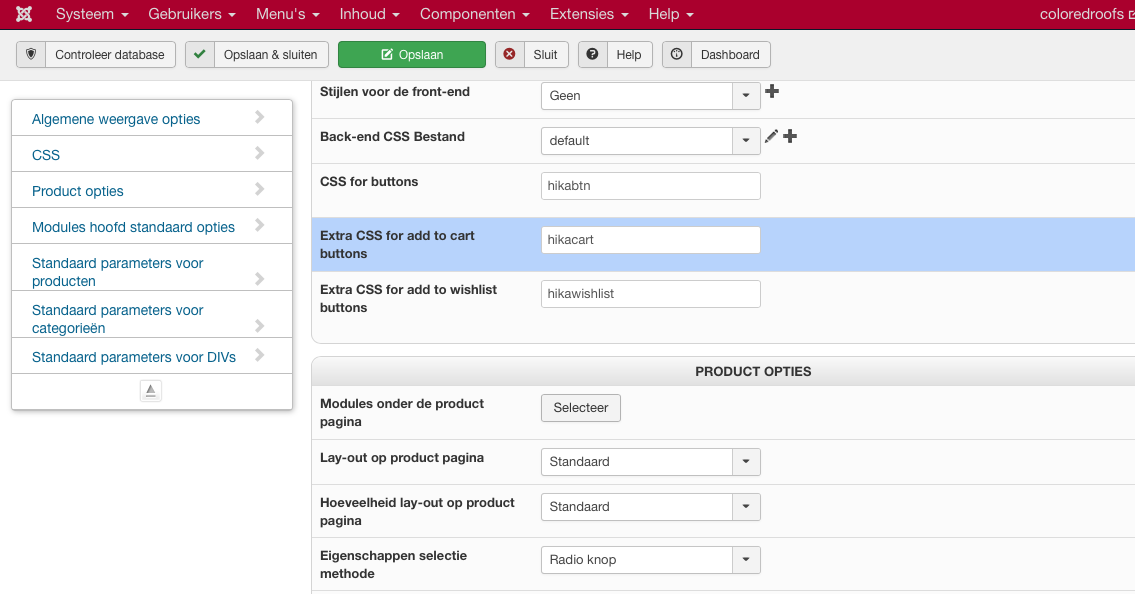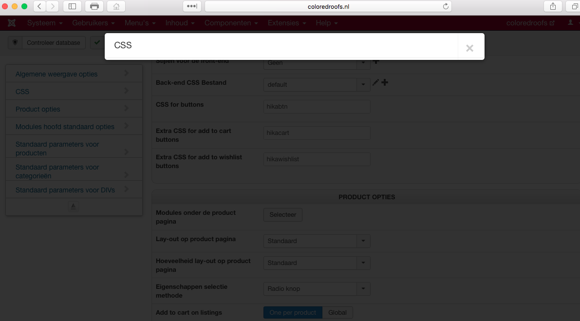 -- url of the page with the problem -- : www.coloredroofs.nl/administrator/index....l=config#display_css