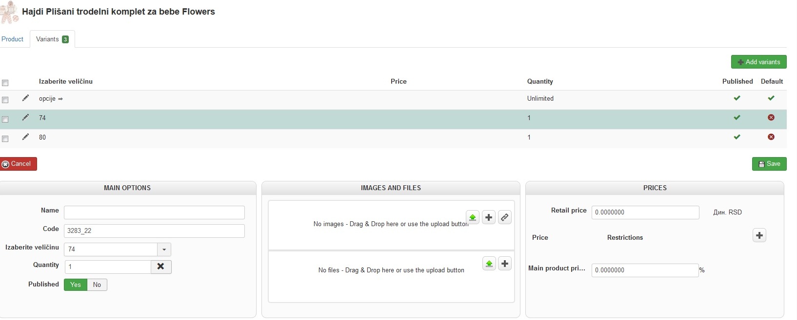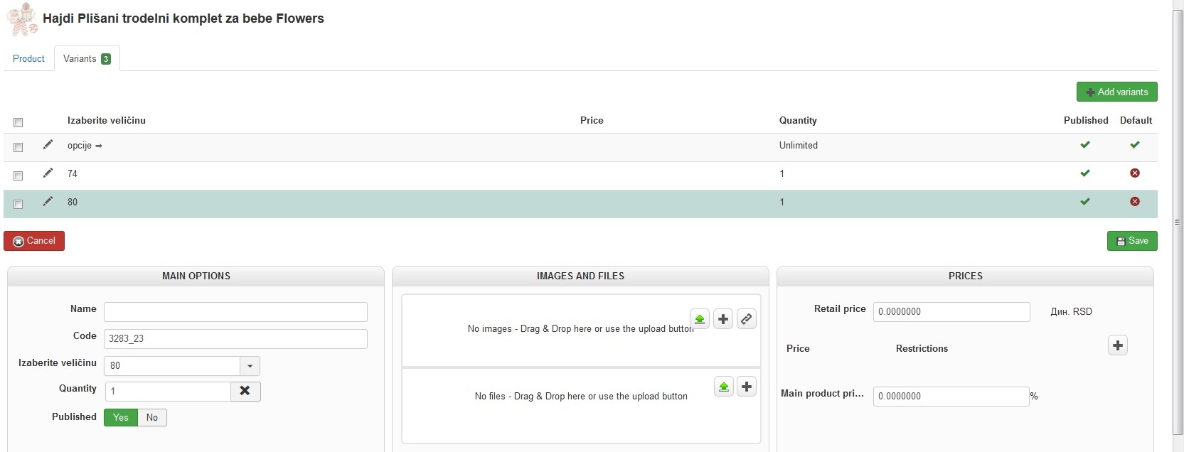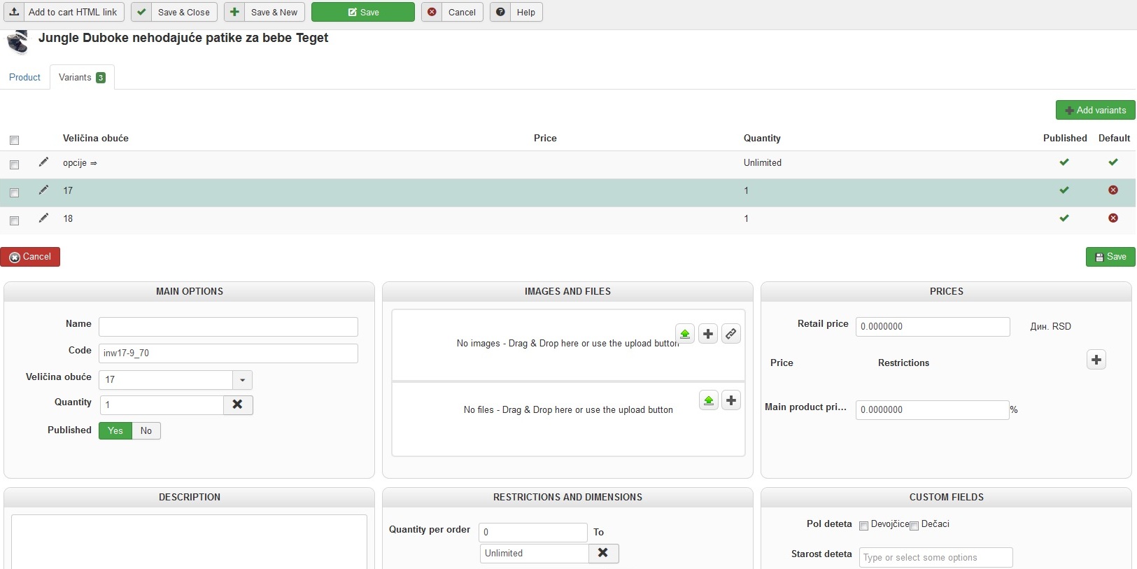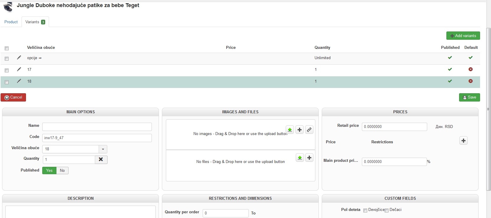Can you provide a screenshot variant configuration page, the best way to do will be to have one which description works and one that doesn't.
