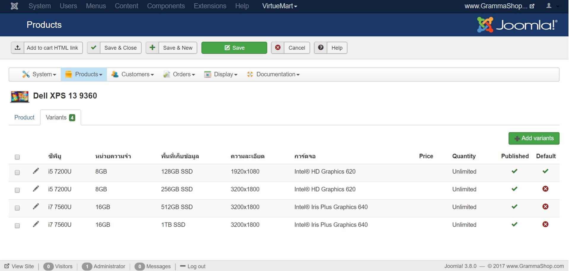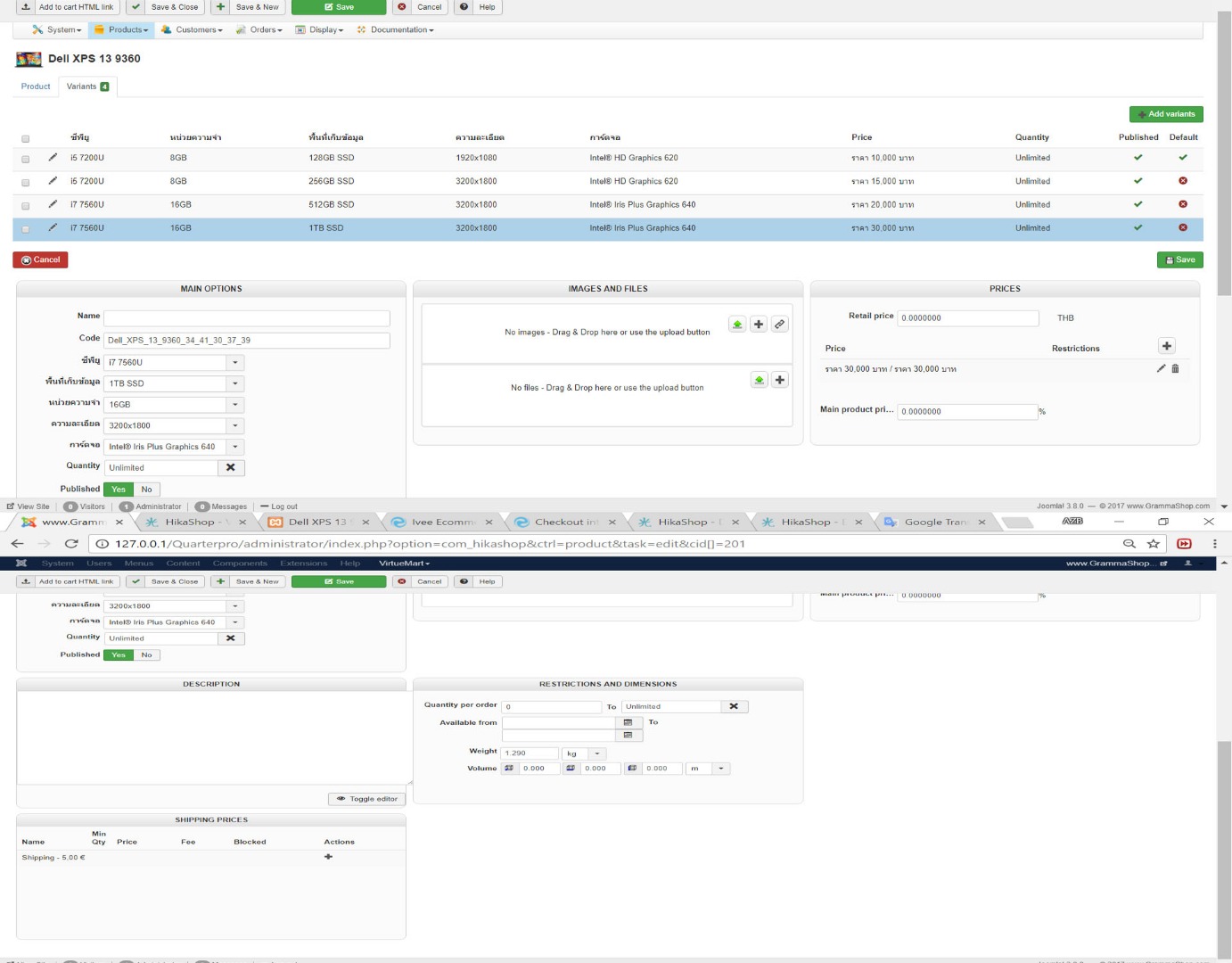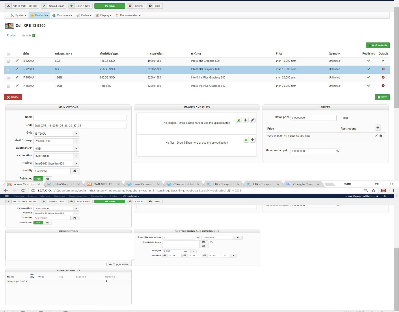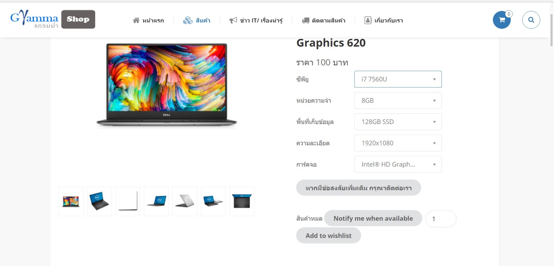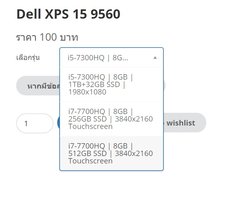 Then I try to select CPU(ซีพียู) i7 7560U. It should show RAM 16GB, Display 3200x1800, etc.