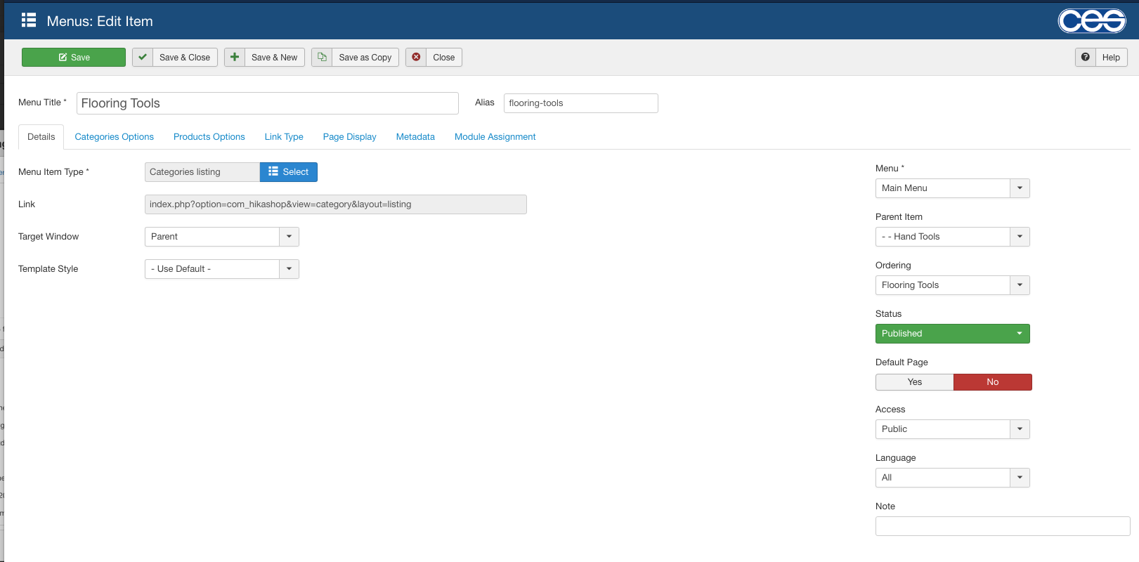You created a specific menu for "Flooring tools" but in the configuration of that menu, you did not select any category.
