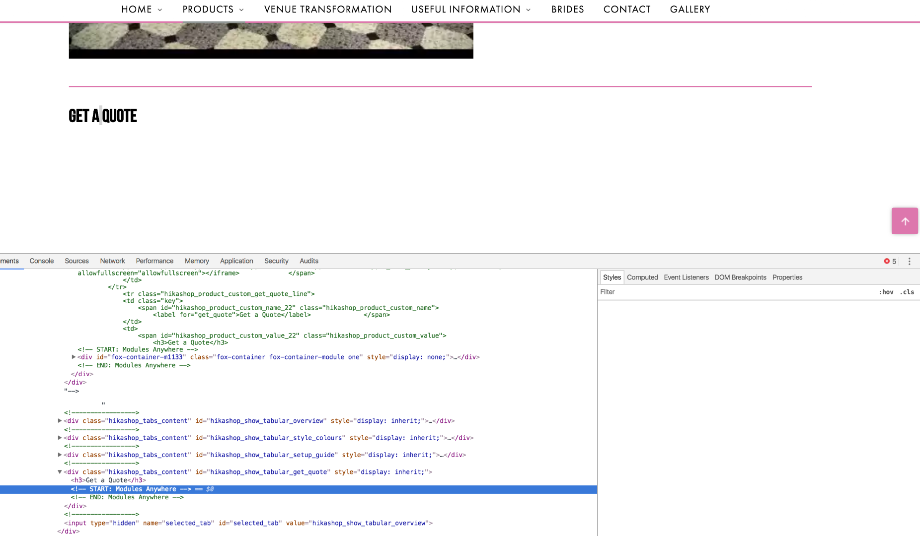 Issue which is not related to HikaShop or Module Anywhere ; but to some customization you made in the views.