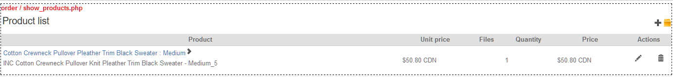 Now to show thumbs in front-end user order modify order / show.php and after line 165: