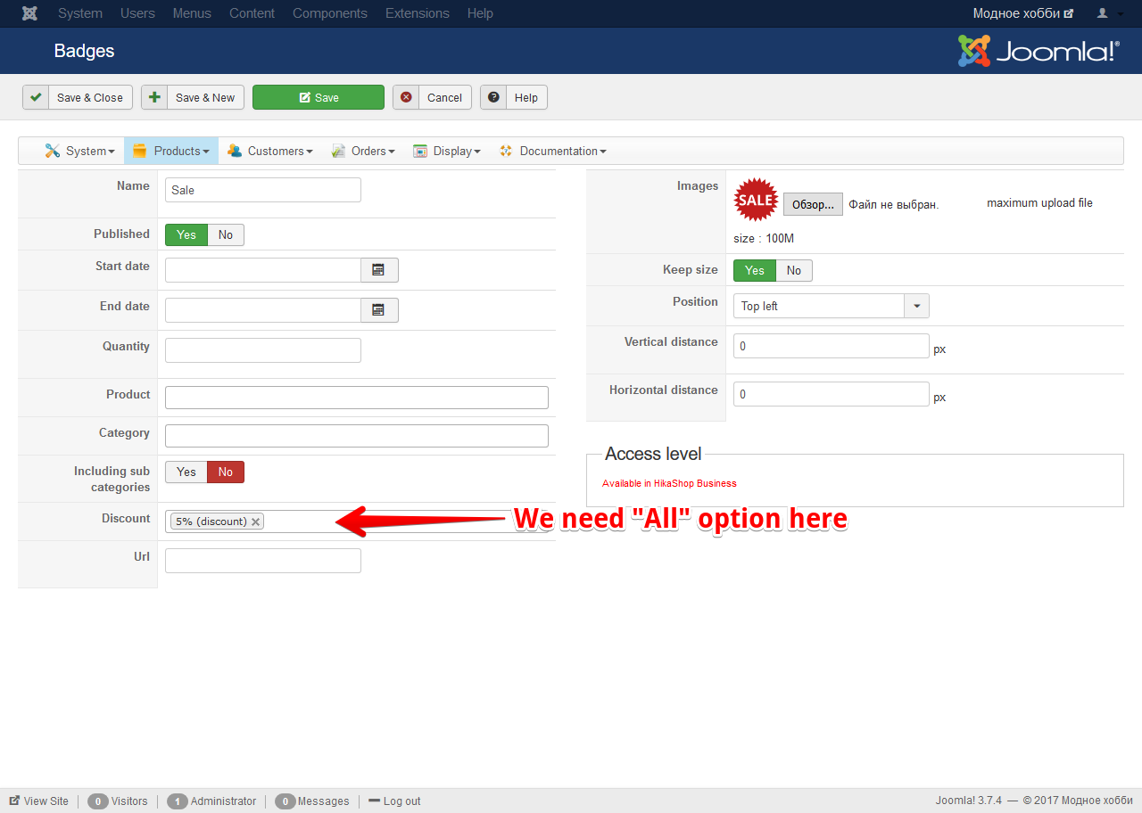 Jerome wrote: Since you can use discount to be applied on categories ; you can have create categories for your different discounts and use the parent category (named for example "discounts") to apply your badge on all.