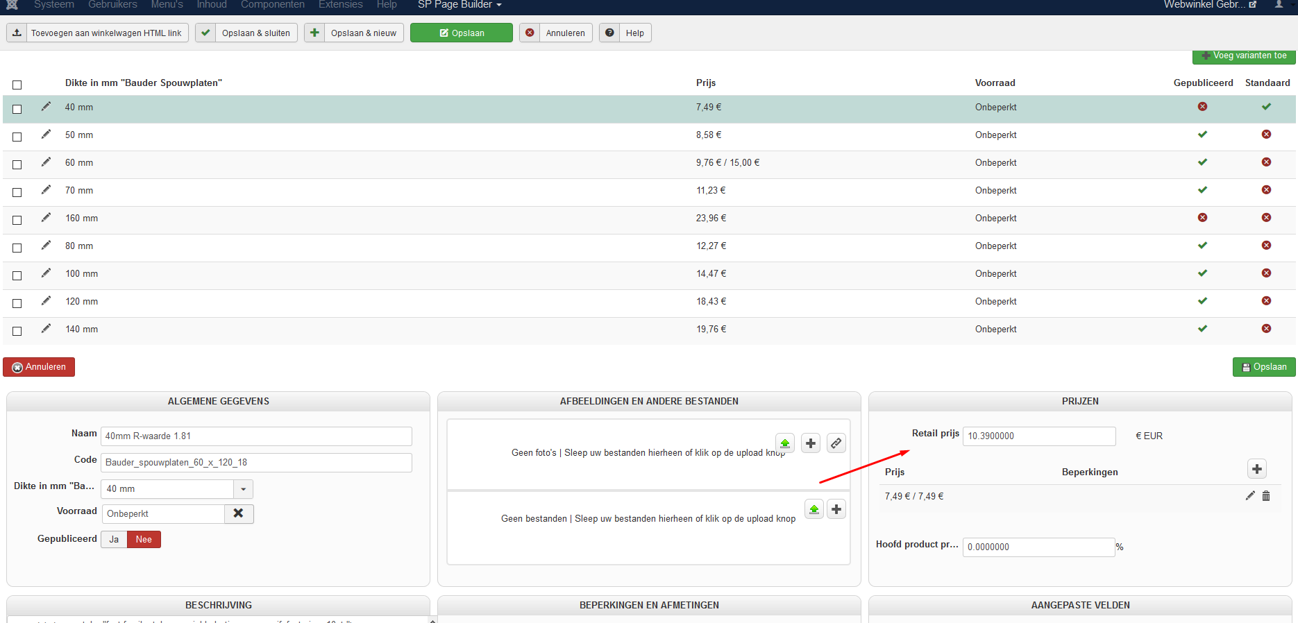Is it possible to enter 2 retail prices and show them on product page?