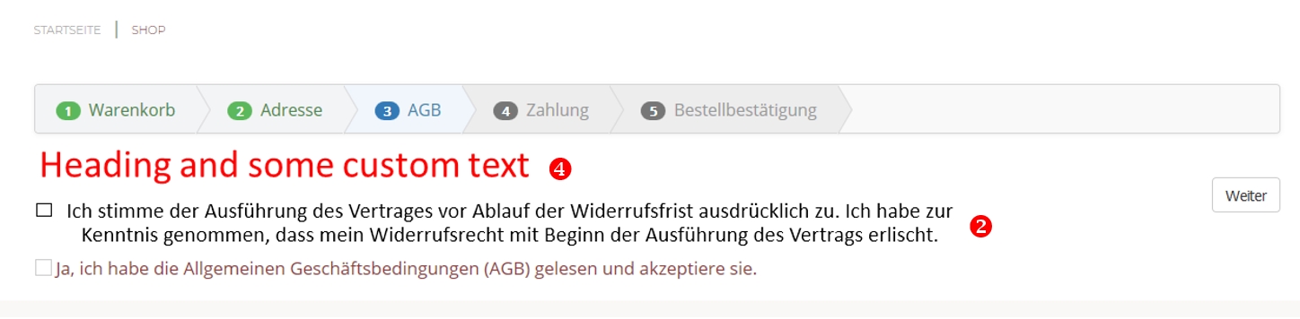 4. Sure but using custom fields will only affect the "Fields" step of your checkout workflow, if you want to change the displaying of the term and condition step, you'll have to directly edit the code of the "show_block_terms" file of the "Checkout" view of your front-end template via "Hikashop->Display->Views".
