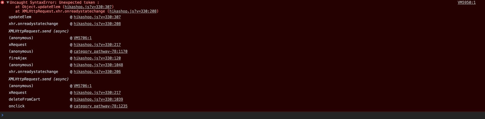 The problem is that the module is trying to refresh itself but, for an unknown reason, the Joomla routing is nor performed at it should and the result you have in not the HikaShop module content.