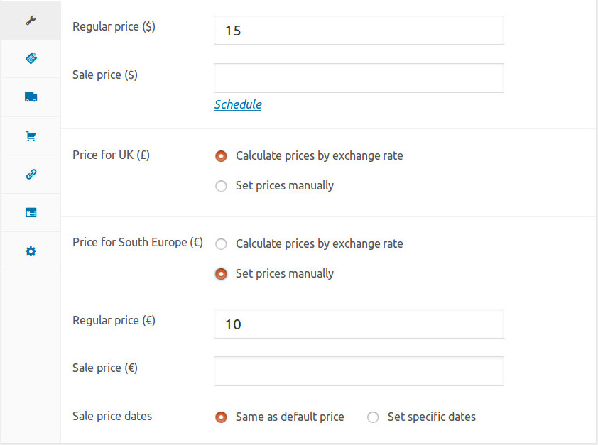 But for a new client I need to make a shop where prices are presented on basis of the origin of the visitor, So an American will get a price in $, but that price is not calculated by the price for a Dutchman in €, but it will be a complete different price because of a lot of things. So NO conversion but set prices by region/countries.