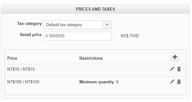 - Another price with the "Price" option set to $100 and the "Quantity" option to 9