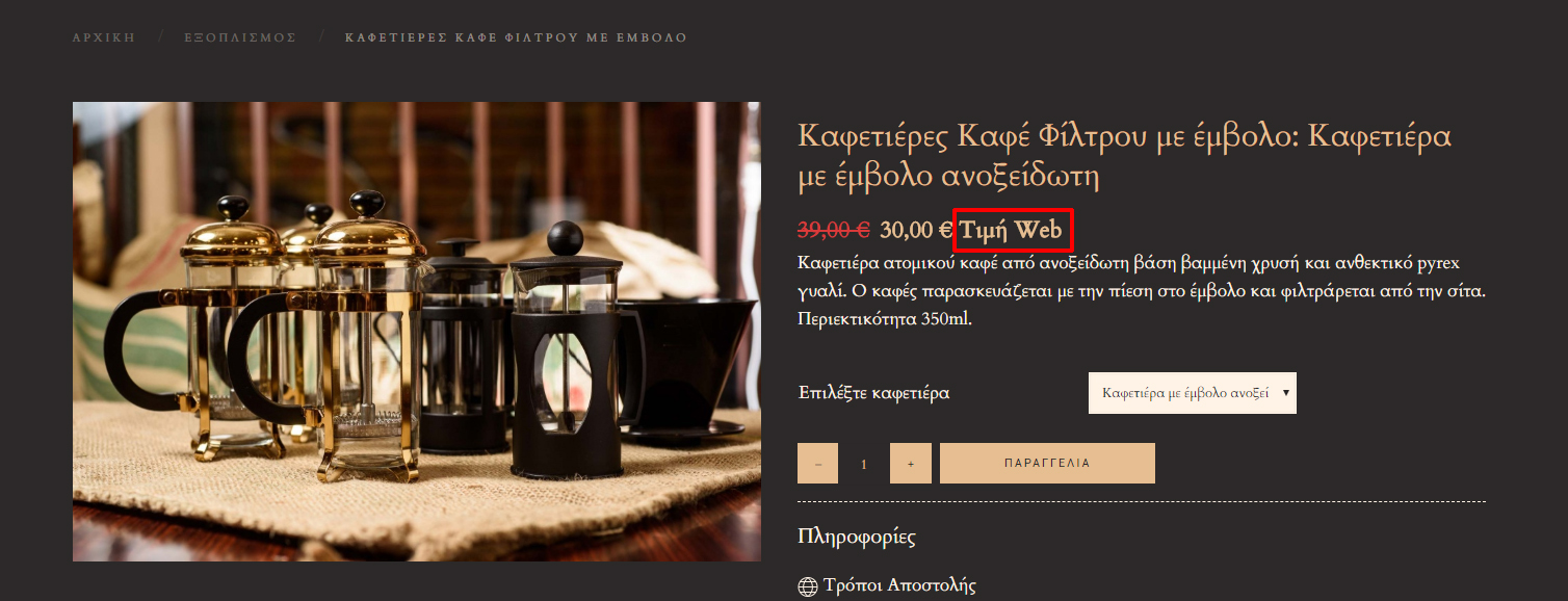 when a product has a discount i want to write next to the final price "Web price",