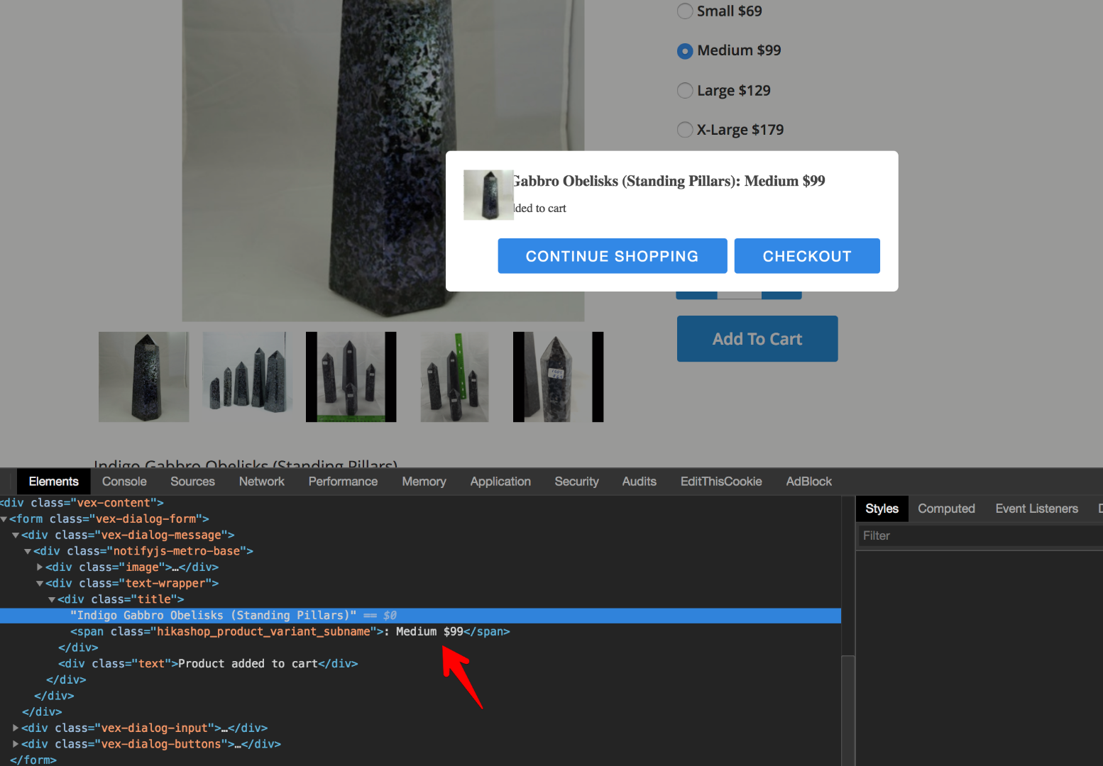 My problem is on the add to cart popup where the same is happening with the title. I've modified successfully the code to display the pop-up as I wanted but I have no price displayed for first option.