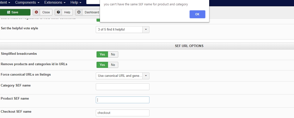 2. You need to enter back "category" in the category sef name setting first. Note that it's not a problem for the category URLs. Since you already have a menu item for each category ( if you followed what I said on point 1), you can enter the URL of the menu item as canonical URL of the category and thus the "category sef name" won't be used at all.