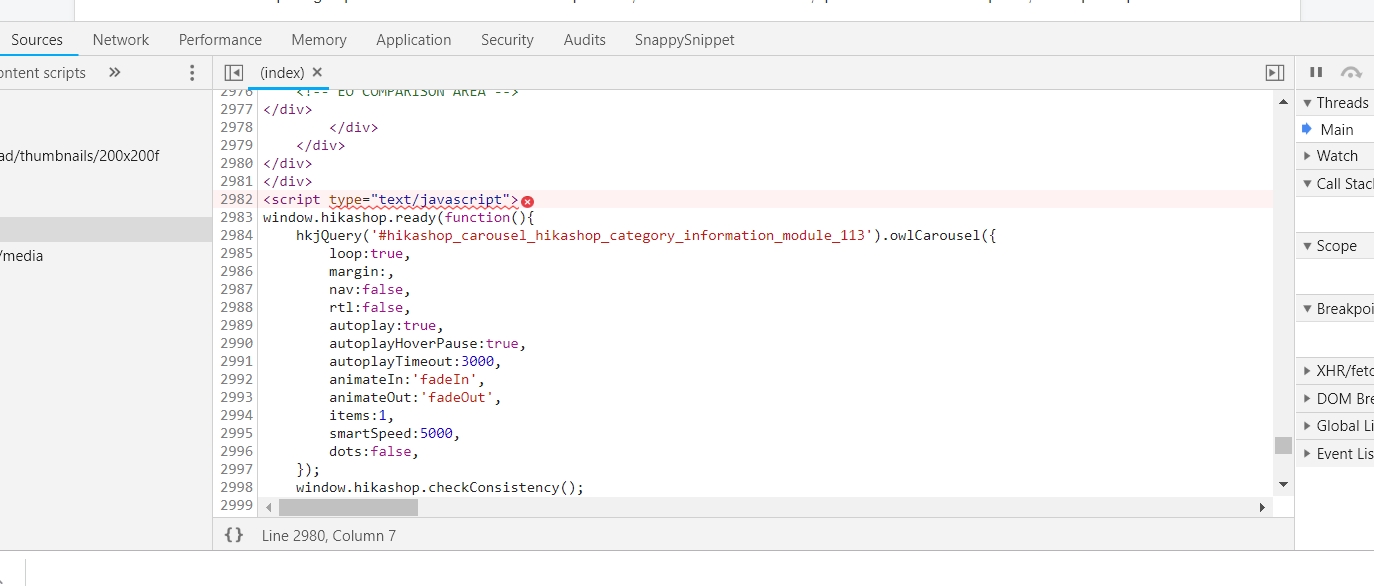 The carousel in the Hikashop is throwing errors on my site:
