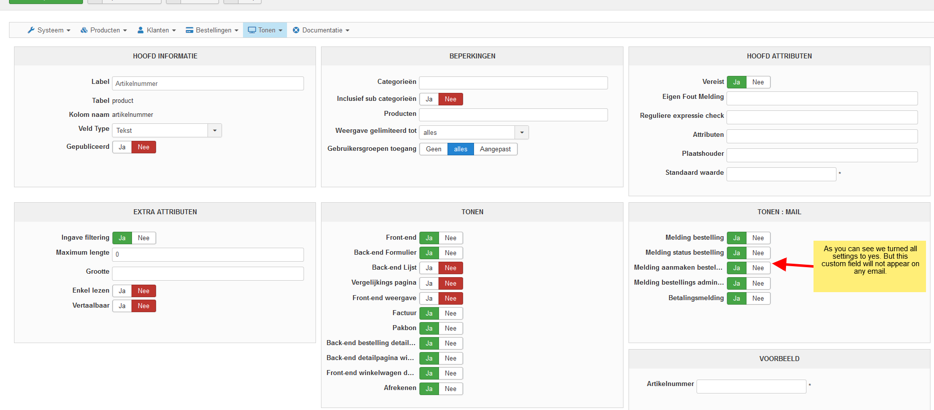 -- Error-message(debug-mod must be tuned on) -- : custom fields don't show in any email