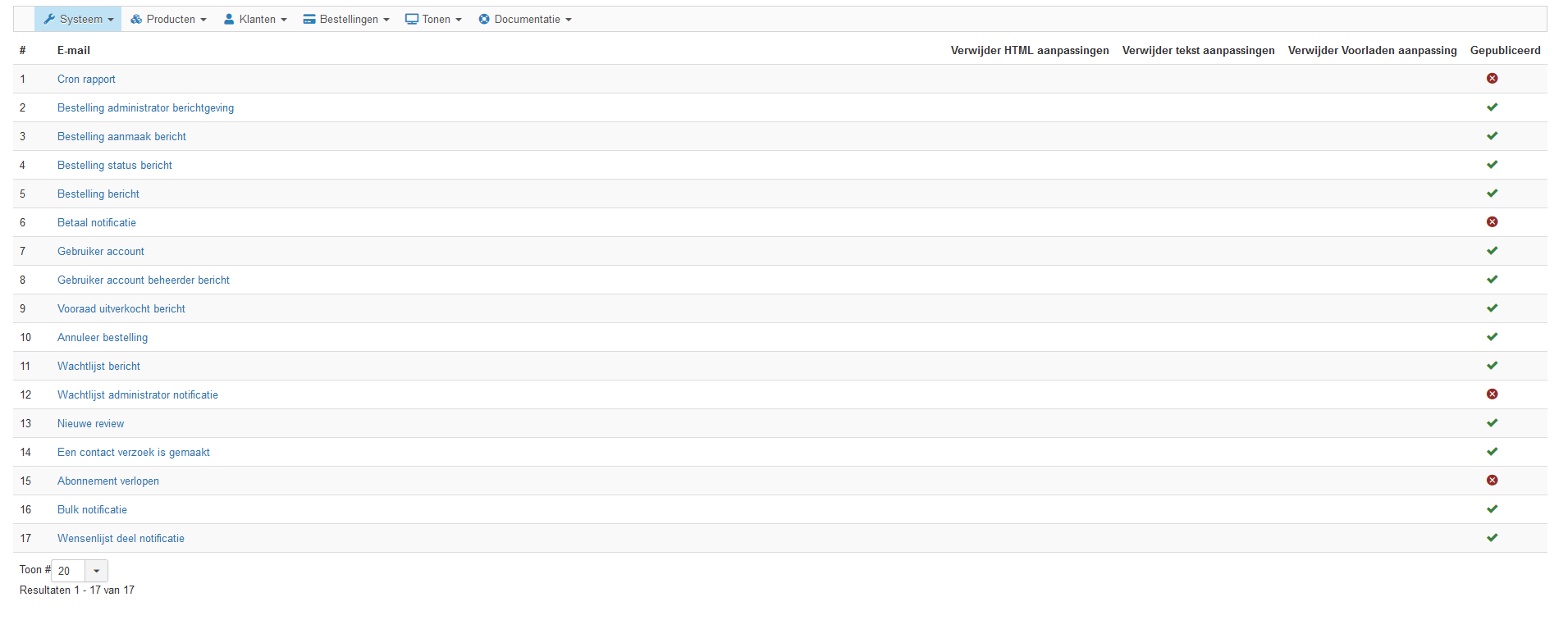 Second, please provide a screenshot of the page System>Emails.