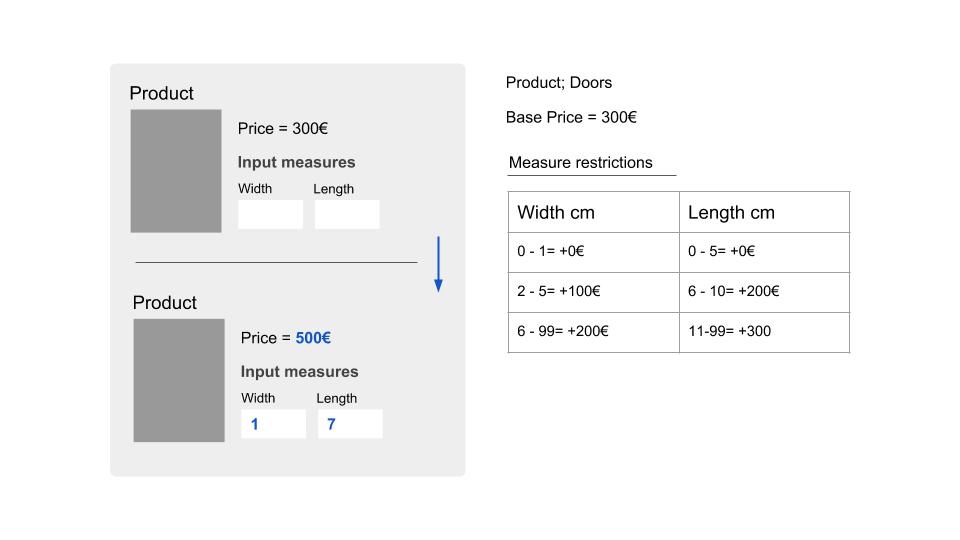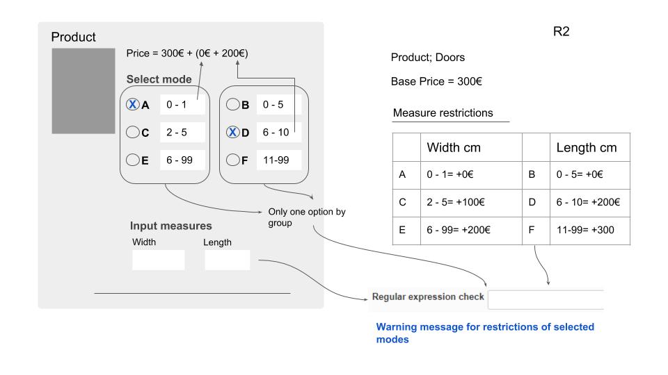 Another option is to work with the plugin "HikaShop Custom Quantity plugin width length" but my problem is that the price of the product does not vary depending on m2, cm2, etc., the base price is added an amount based on measures maximum and minimum