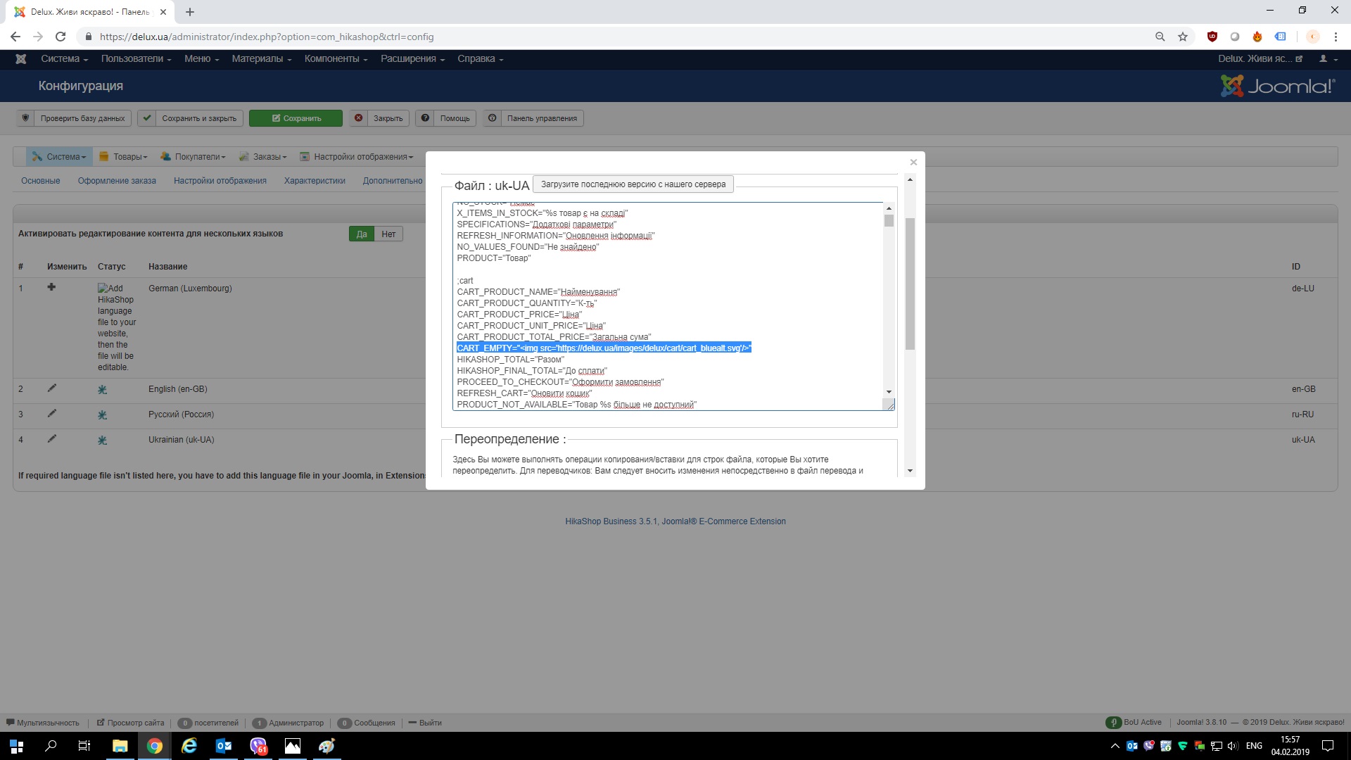 And finally, you want to do a translation override in order to change the different texts displayed by the cart module 'mini' mode to display instead an image: