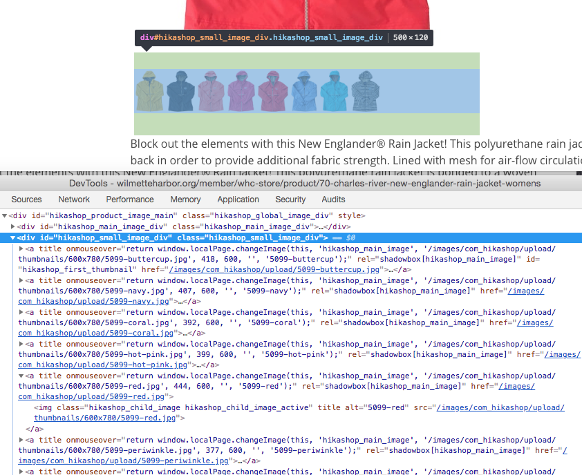 However, now 1) all the little product thumbnails have disappeared from below the product photo, and 2) the size of my product photo has changed (smaller).