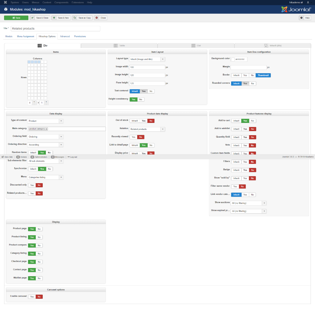 Note that you also need to select that module in the "modules under the product page" setting of the Hikashop configuration after you configured the module settings.