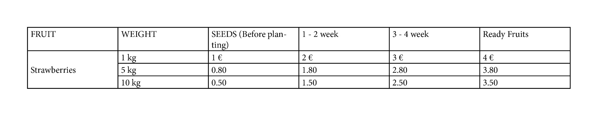 So, for example, if the strawberries will be planted on 1st of April, till that date their cost will be 1 euro.