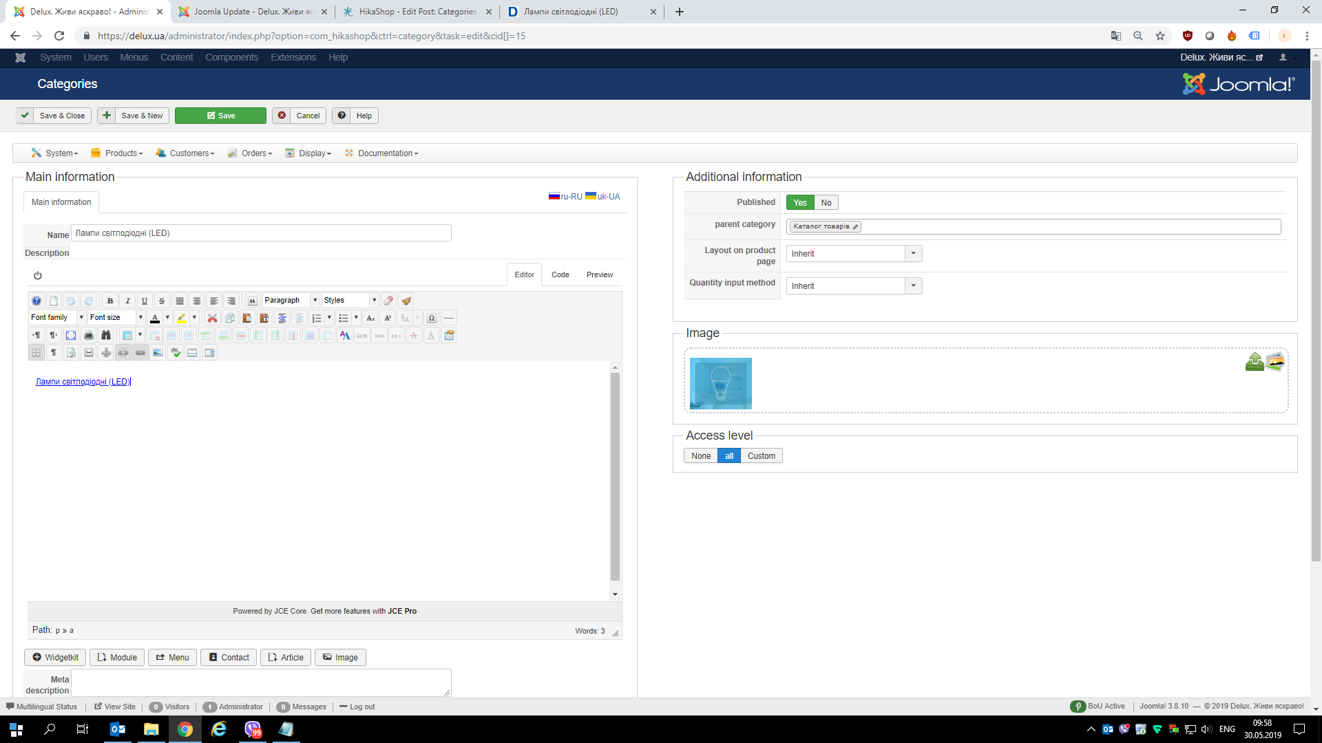 -- Joomla version -- : 3.8.10