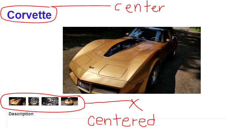 Child Images Under Main Product Page Image Centered and Name Title