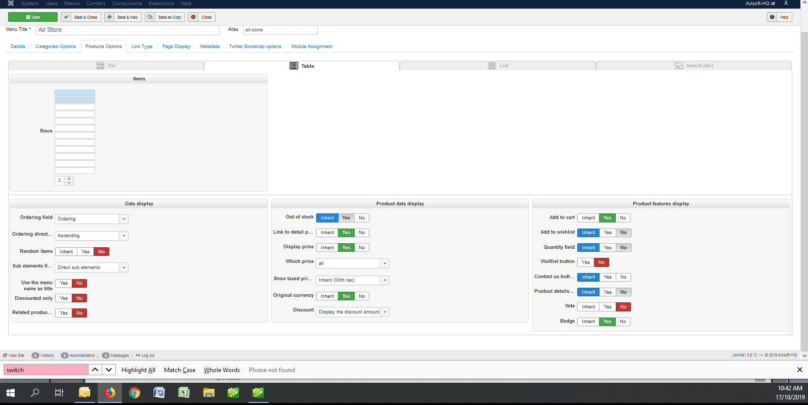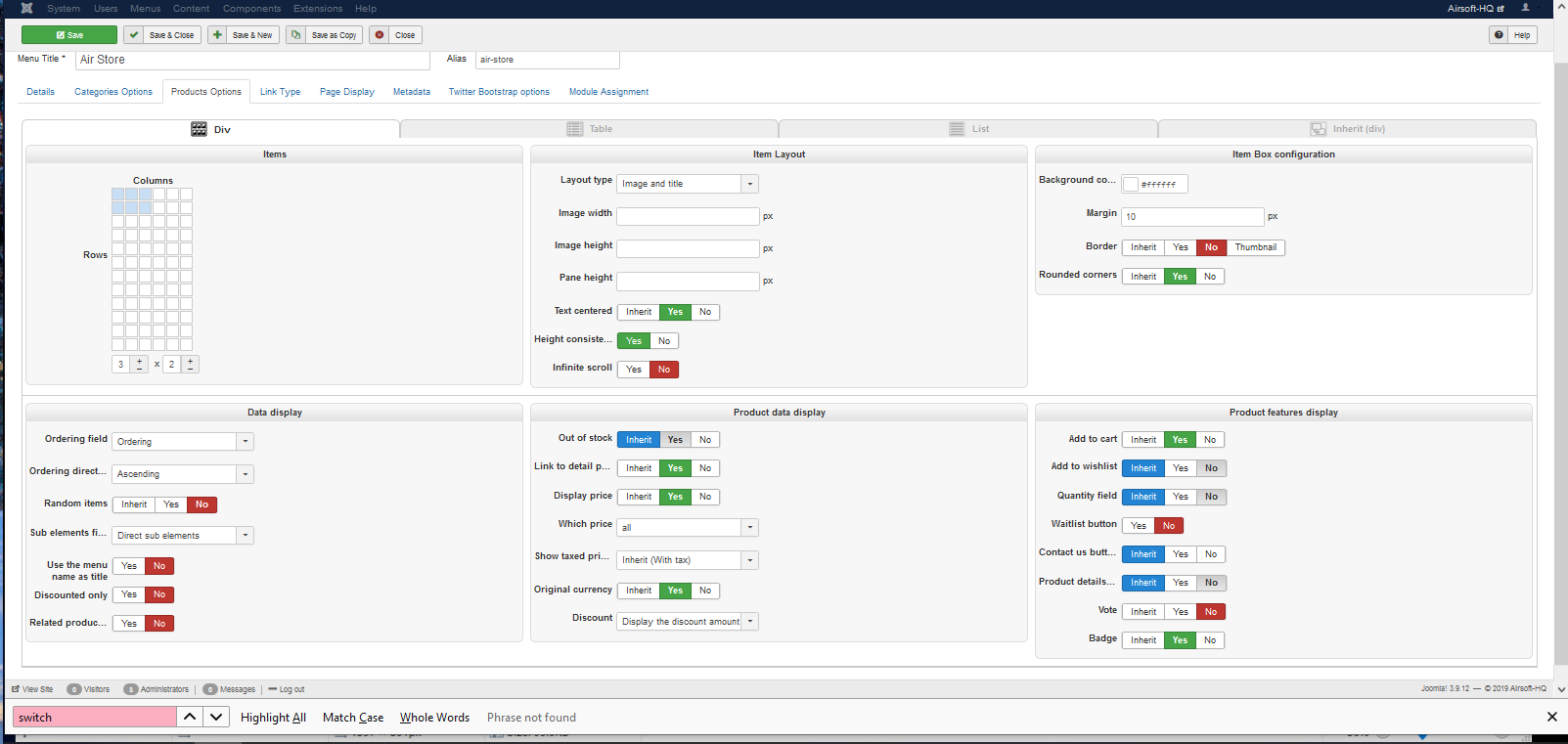 And the option won't disappear from the options page. However, if you are in "table" or "list" mode for the display of the menu item, you won't have that option as the switcher doesn't appear with these modes.