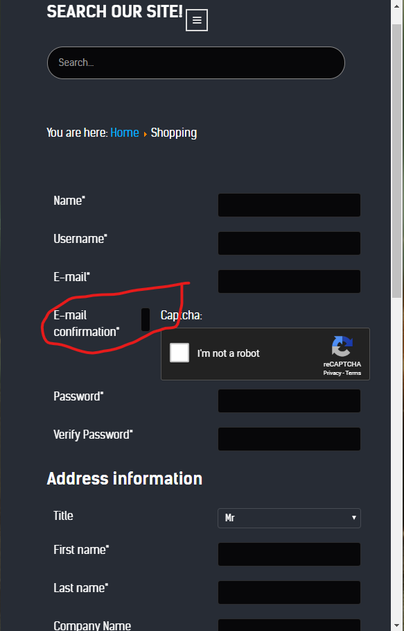Desktop Small Issue - I scrolled up just for the heck of it and noticed...that same Email Confirmation box that was offset above on the "Desktop Full" image...is now almost non-existant.