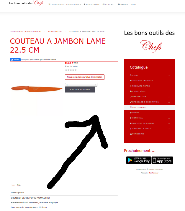 • the description is displayed just under the "Add to cart" button