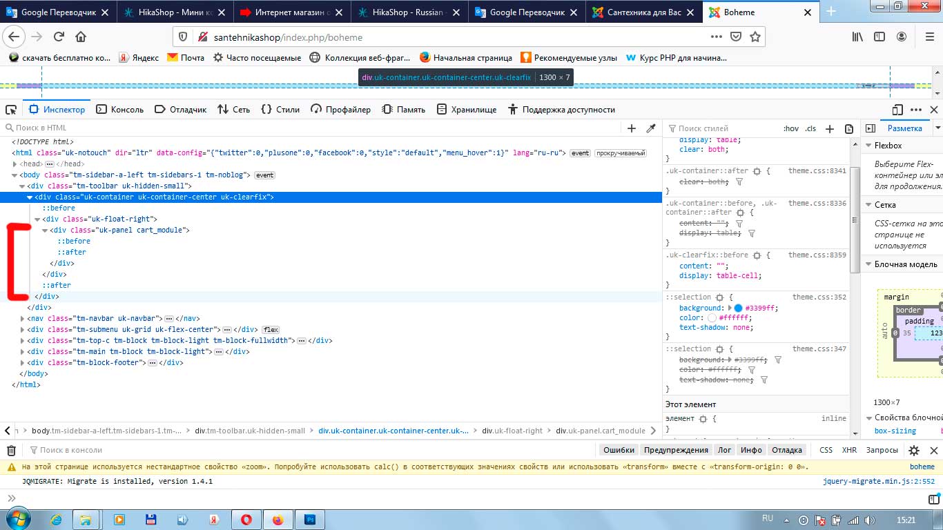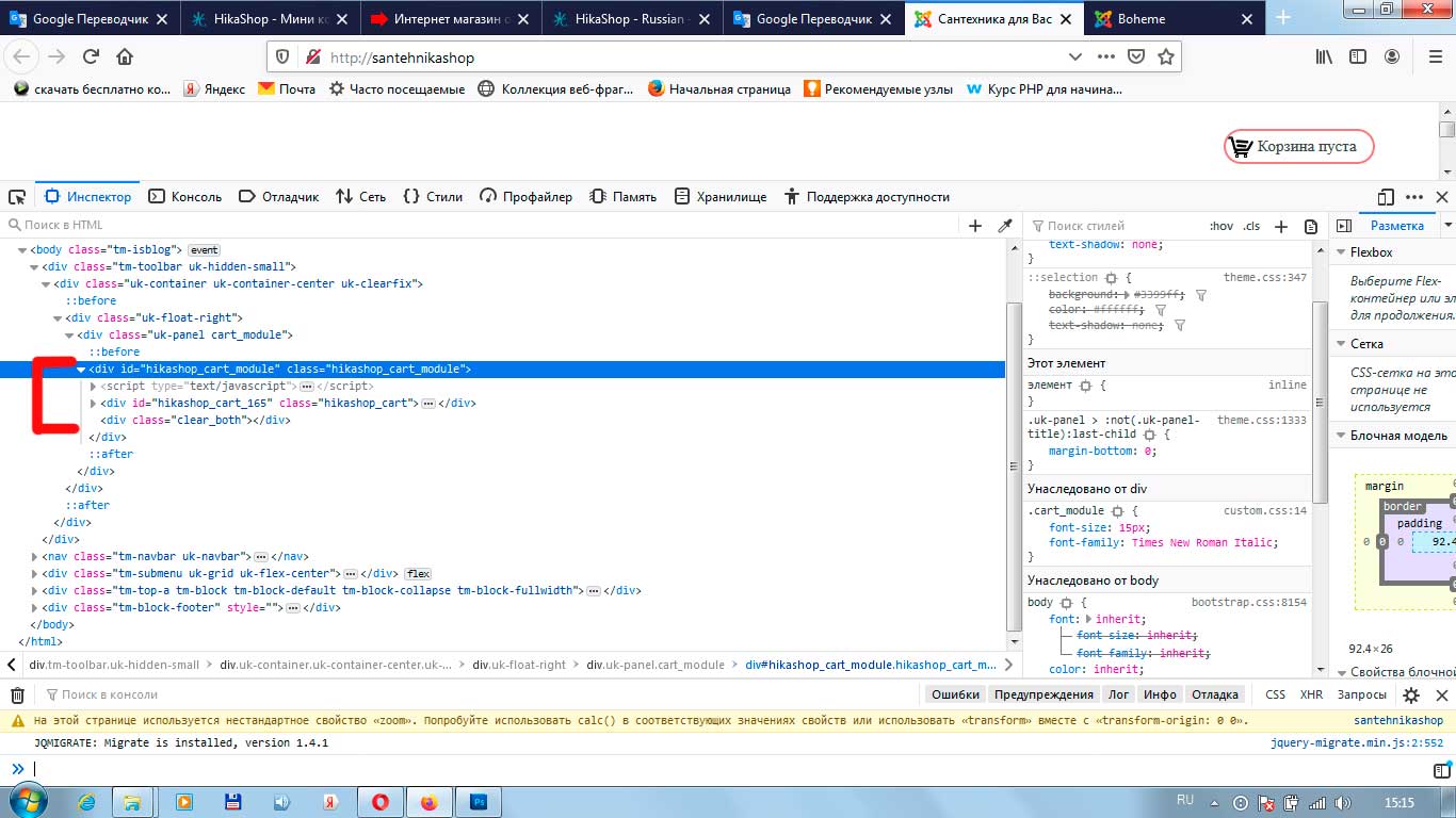 На всех страницах включенных в главное меню (main menu) мини корзина отображается корректно, на страницах других меню (производитель, цвет и т.д.) отображается не корректно.