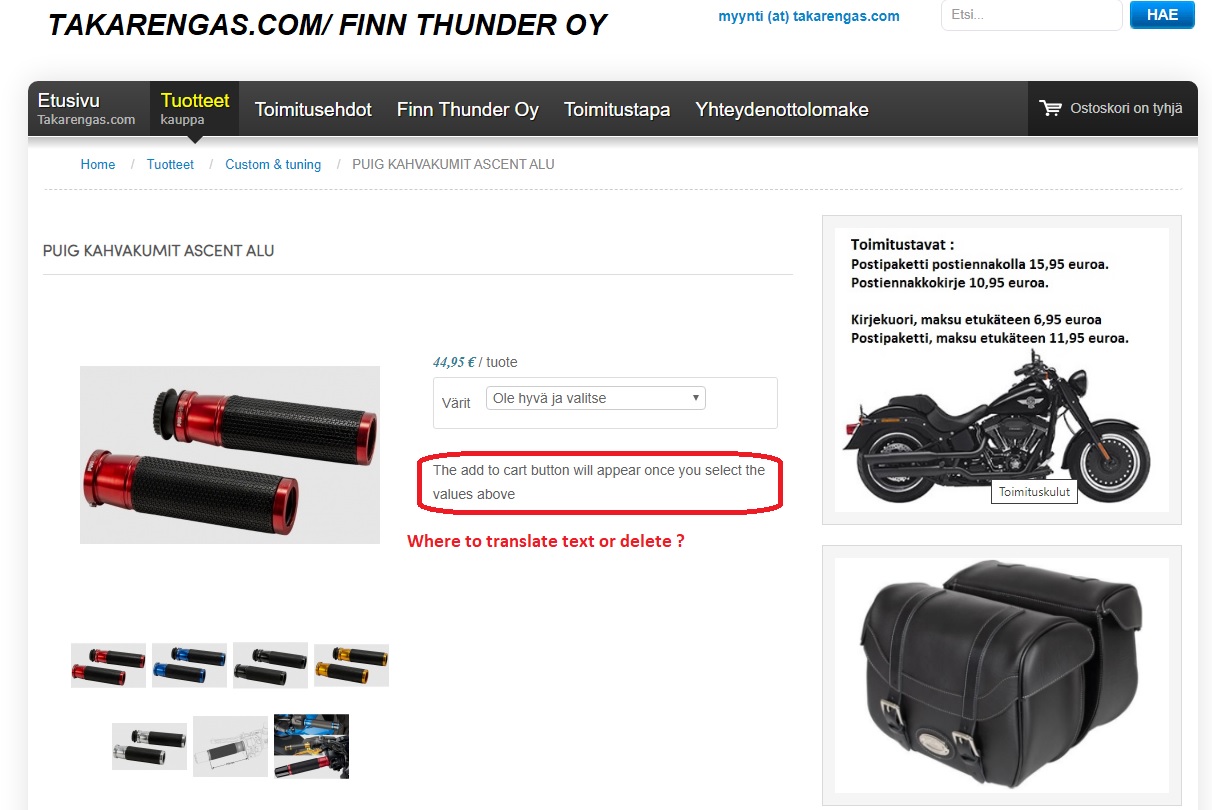 Finnish = Lisää ostoskoriin -painike tulee näkyviin, kun olet valinnut yllä olevat arvot.