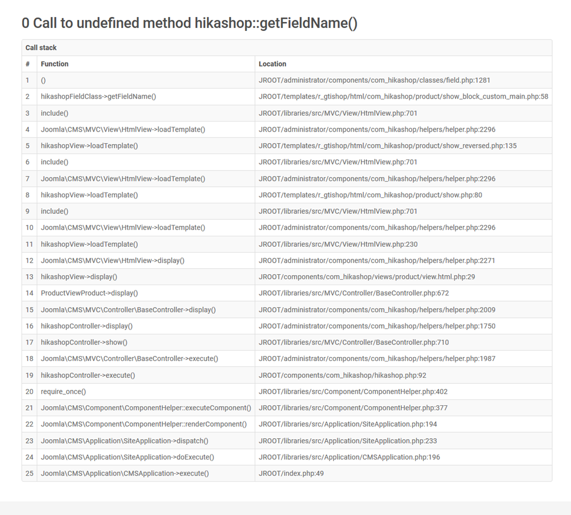 b) additionally when custom field is not a text field type – for example multiple dropdown or single dropdown usage of this code caused a white screen with error message “0 Call to undefined method hikashop::getFieldName()”
