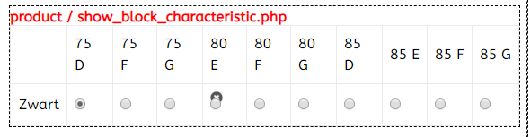 If you set the "characteristics selection method" setting to "table", then you'll have a 2D table with only the variants with stock with a radio button. The others will have a cross icon.