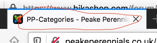 OK, so did look right past the "page title" box - but it doesn't say "PP Catergories" it says "Peake Perennials online shop"...?? How's that work?