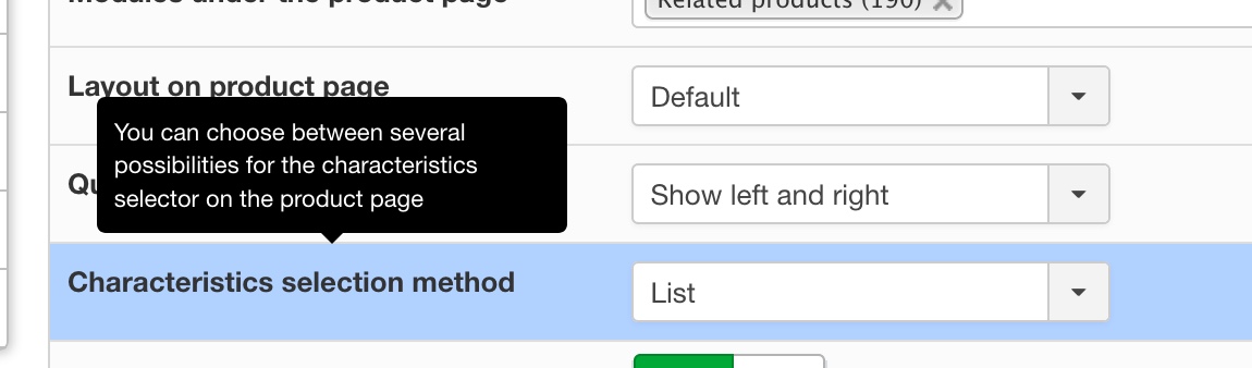 In "list" mode, the setting for individual characteristics is disabled.