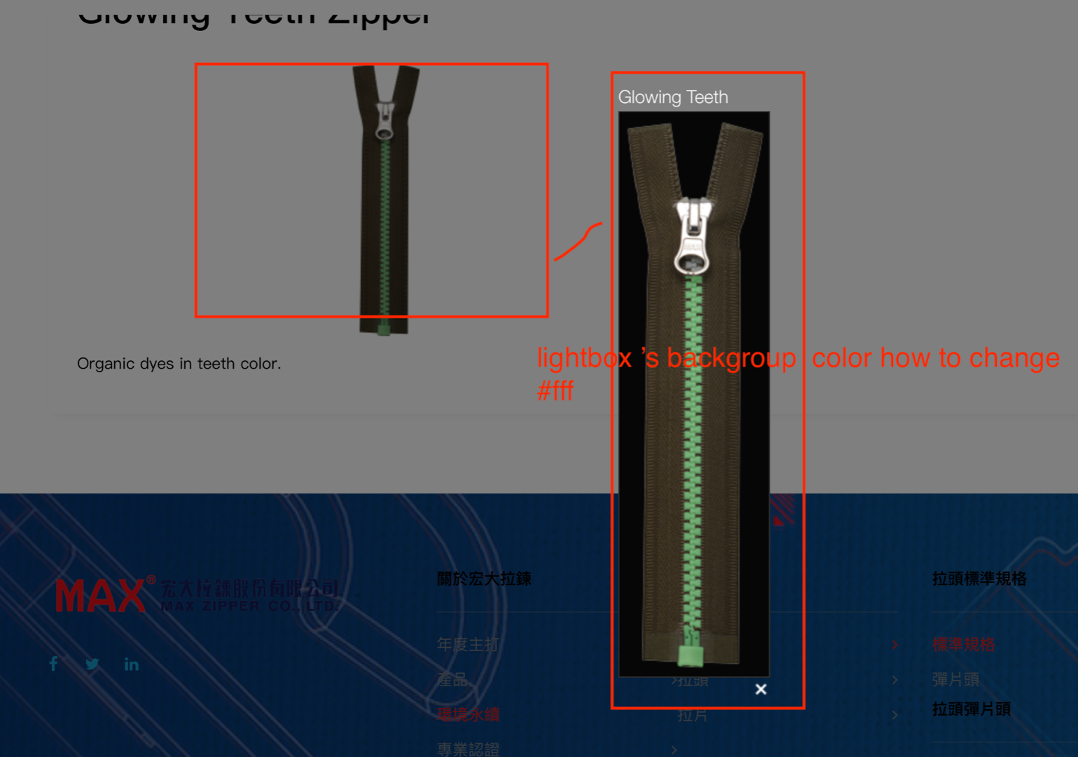how to change product Lightbox 's backgroup color ?