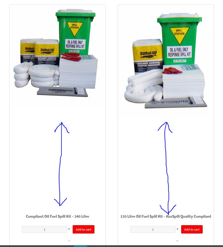 Click the top result 'Oil & Fuel Spill Kits...' You will see each result is stretched, too tall.