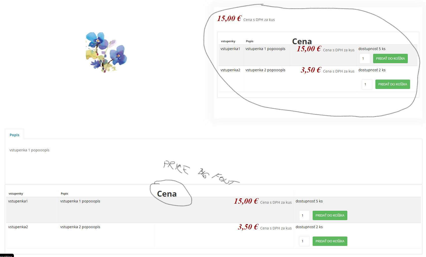 it works, but list view is viewed as on attached picture. The characteristics block is viewed two times and text "cena" (english price) have big font.