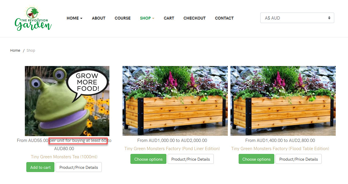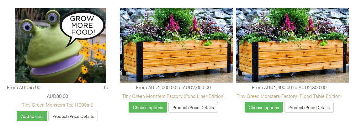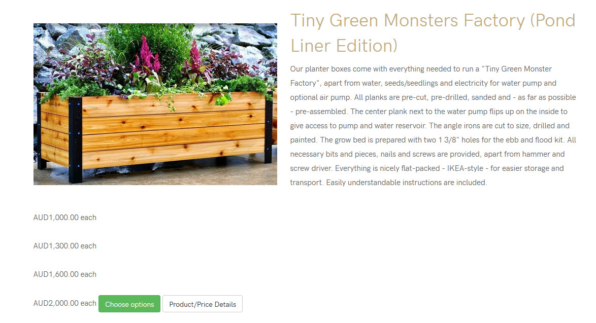 While the four different prices for the different sizes are mentioned on the product categories list page, there is no explanation what the different prices are for. It would make far more sense for the customer, if there was an explanation what variants the four different prices are for.