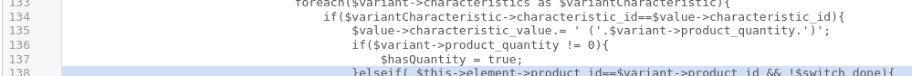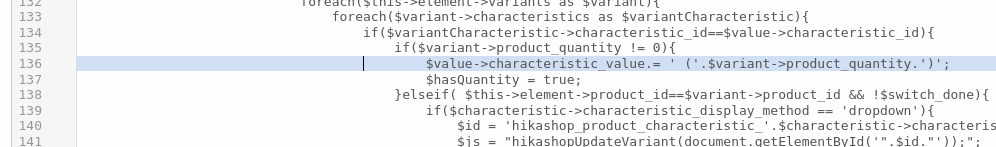 $value->characteristic_value.= ' ('.$variant->product_quantity.')';before the code: