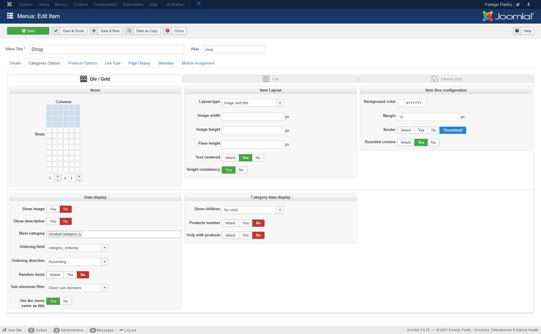an exact copy. If you go to foreignpantry.com/shop (the old template) the page looks perfect.