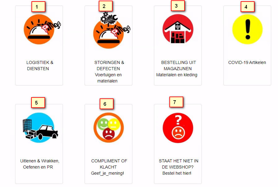 But if a customer clicks on the links at number 2 "STORINGEN & DEFECTEN Voertuigen en materialen" or 6 "COMPLIMENT OF KLACHT Geef_je_mening!" I don't want to take them to the products in the category, but to a page with information.
