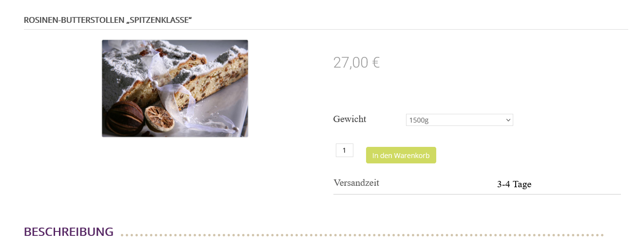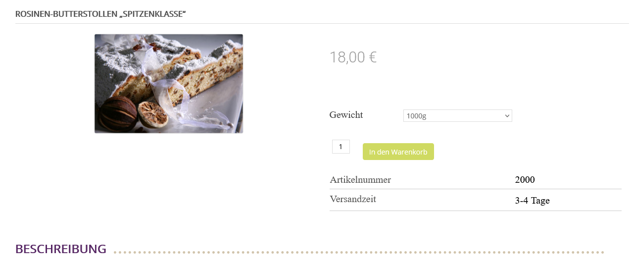 Sobald ich mir aber ein anderes Gewicht des Produktes auswähle (also eine andere Produktvariante), verschwindet die Artikelnummer und es wird nur noch die Versandzeit angezeigt.