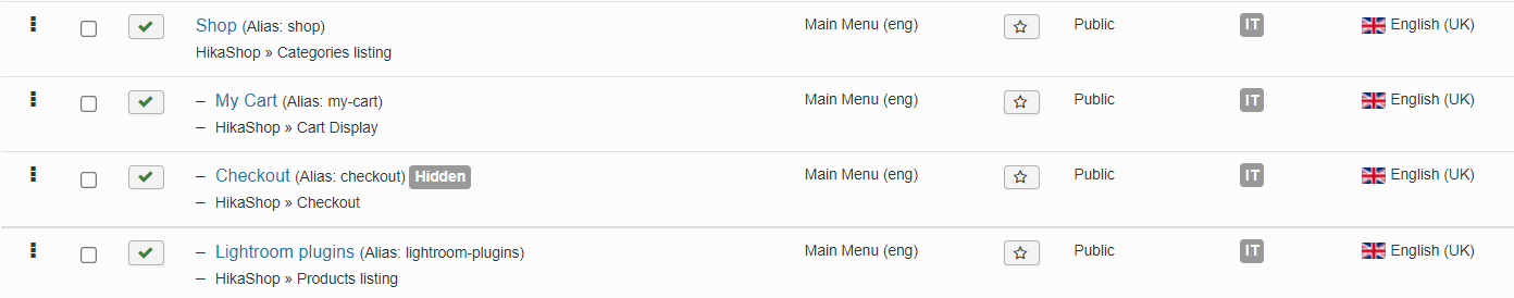 Would you have deleted your menu items and recreated them with the same options selected, you would not have had the problem.