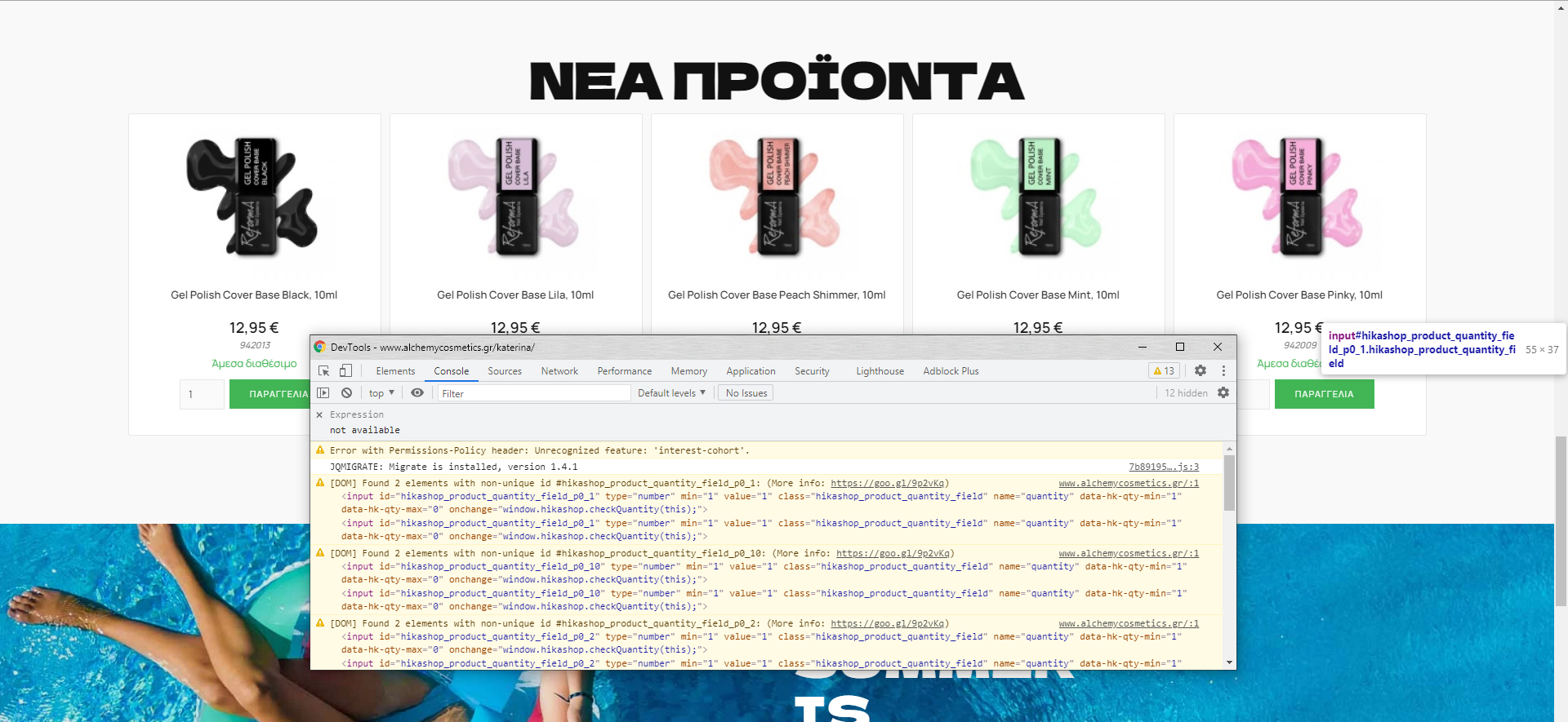 The duplicate ids come from the owl carousel system which duplicates the quantity input fields when creating clones of the products for the carousel system: