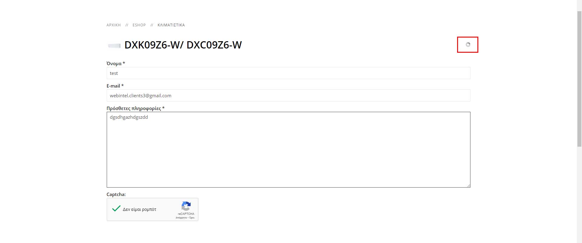 Product contact form is not working.