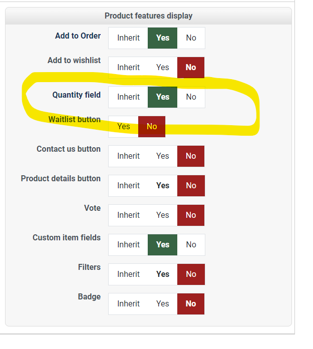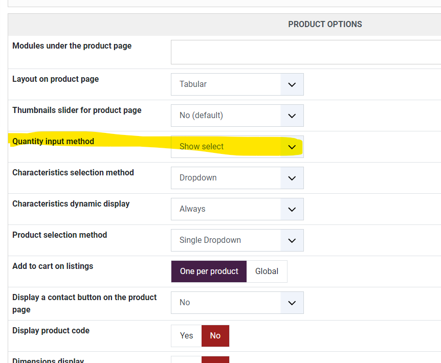 All product are setup with Quantity Input: "Inherit"