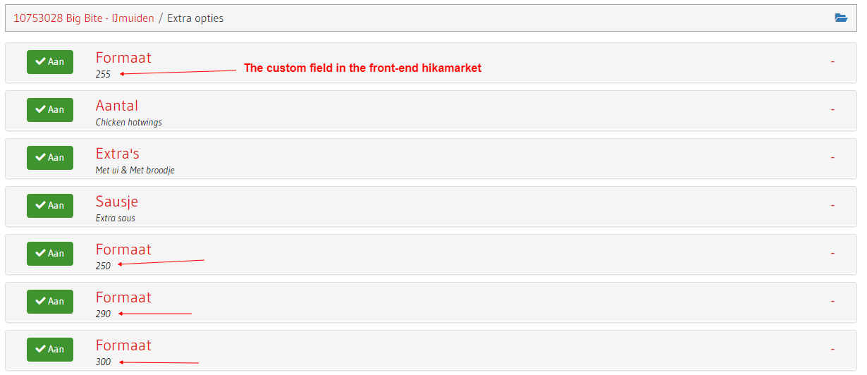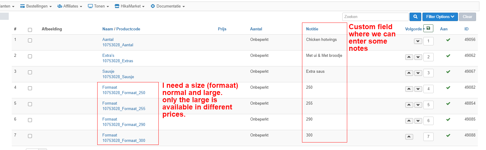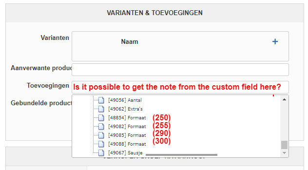 'displayFormat' => '[{product_id}] {product_name} {xxx}',where xxx is the column name of that Notitie custom field and it should appear in the opions selector.