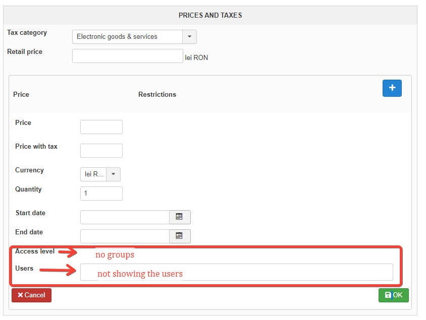 When I try to create a new product, when I add the price there is no option in the "restrictions" section.
