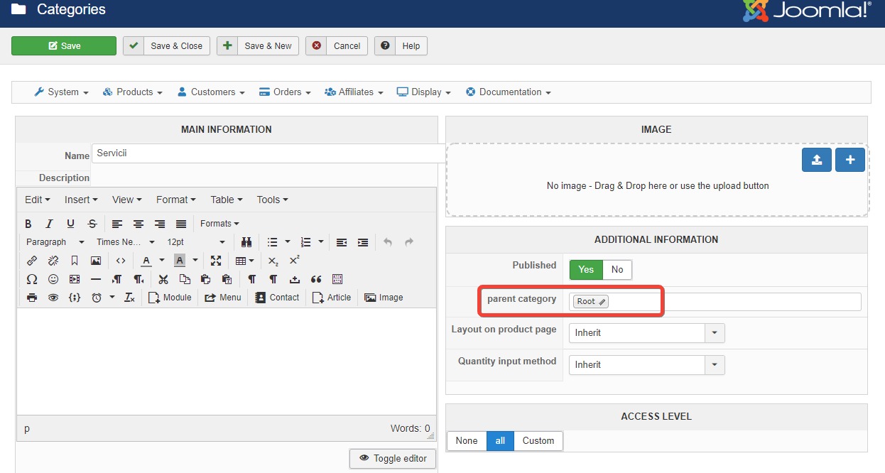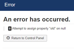 I havea catergory called "services", this category was first create as a child of root category, after that i've changed it to "product category" and now when I try to set the "root" category as a parrent, I get this error Attempt to assign property "old" on null .