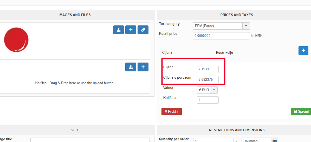 (where XXX is to be replaced by the conversion rate from EUR to HRK ) and then run the mass action to process the price of all the products at once.
